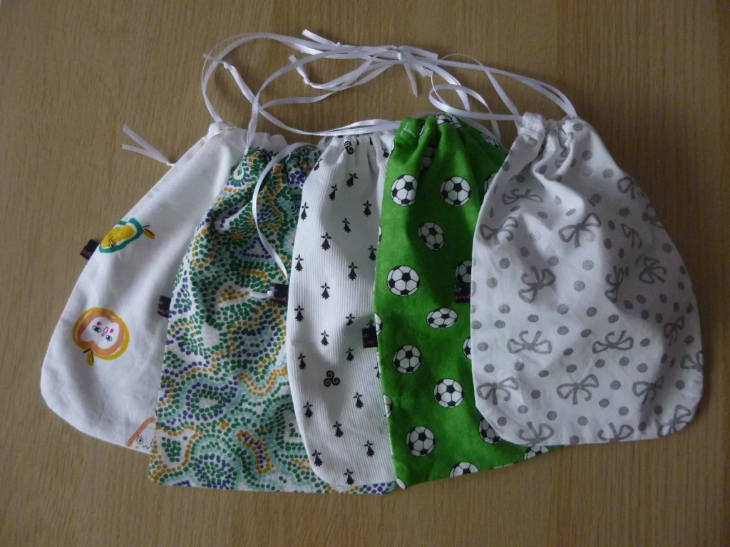 Voici de jolis sacs en tissus pour tous les goûts. De tailles différentes, ils peuvent même servir d’emballage cadeau ![]()
